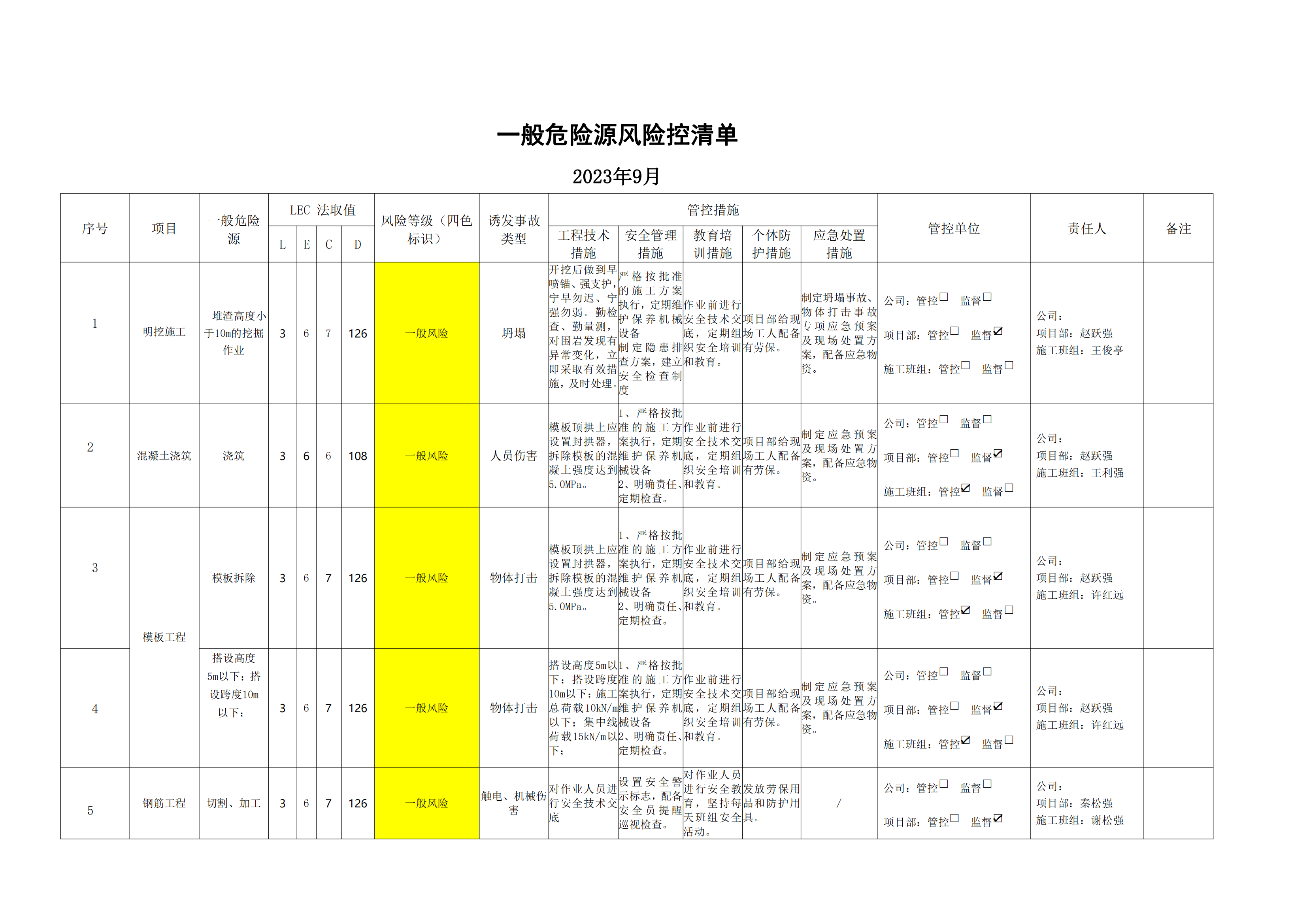 小浪底南岸灌區(qū)7標(biāo)項(xiàng)目危險(xiǎn)源風(fēng)險(xiǎn)分級管控清單(9月)