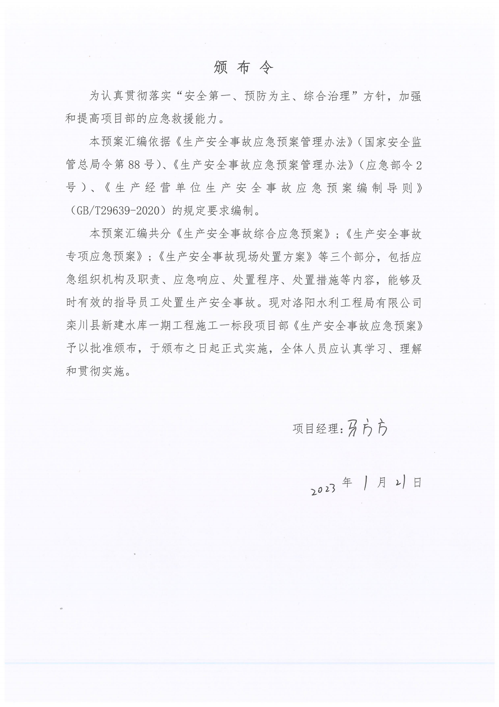 欒川縣新建水庫一期工程施工一標(biāo)段應(yīng)急預(yù)案