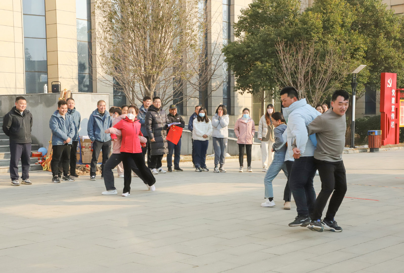 數(shù)九寒冬興賽事,熱情似火融冰雪。12月26日上午,公司在辦公大廈前廣場舉辦“喜迎元旦”趣味運動會,公司機關和項目80余名員工參與了此次活動。公司常務副總經(jīng)理成益洋、紀委書記段曉平、監(jiān)事會主席孫海晶、總經(jīng)濟師暢瑞鋒、副總工華忠等領導親臨賽場,為運動員加油助威。