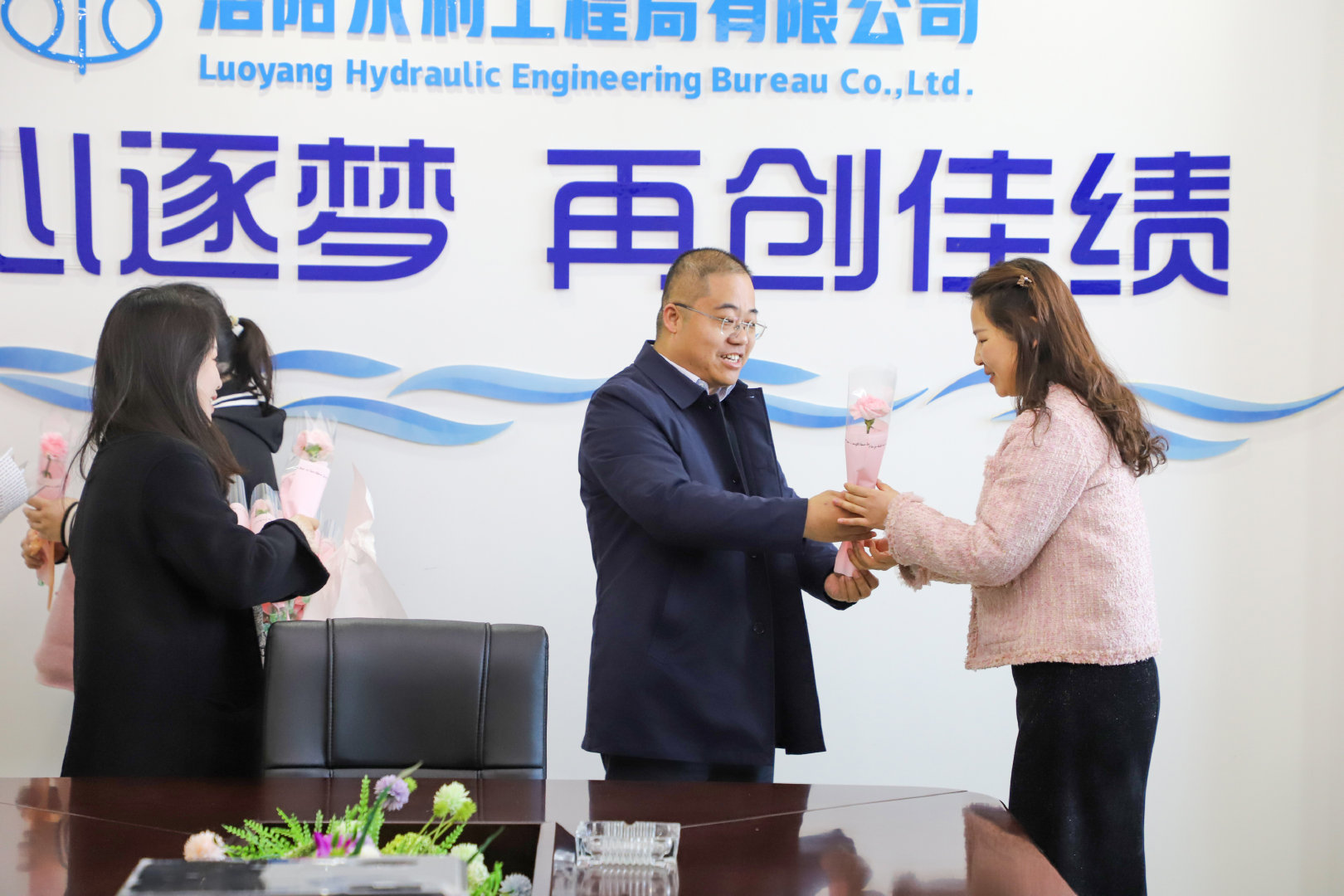 陽春三月春意濃,人面桃花相映紅,第114個“三八”婦女節(jié)如期而至,為充分調(diào)動女職工工作積極性、主動性和創(chuàng)造性,增強女職工的向心力和凝聚力,3月8日上午,集團公司李東坤等領(lǐng)導到中共洛陽水利工程局有限公司委員會(以下簡稱“公司黨委”)為女職工送上鮮花和節(jié)日美好祝福。
